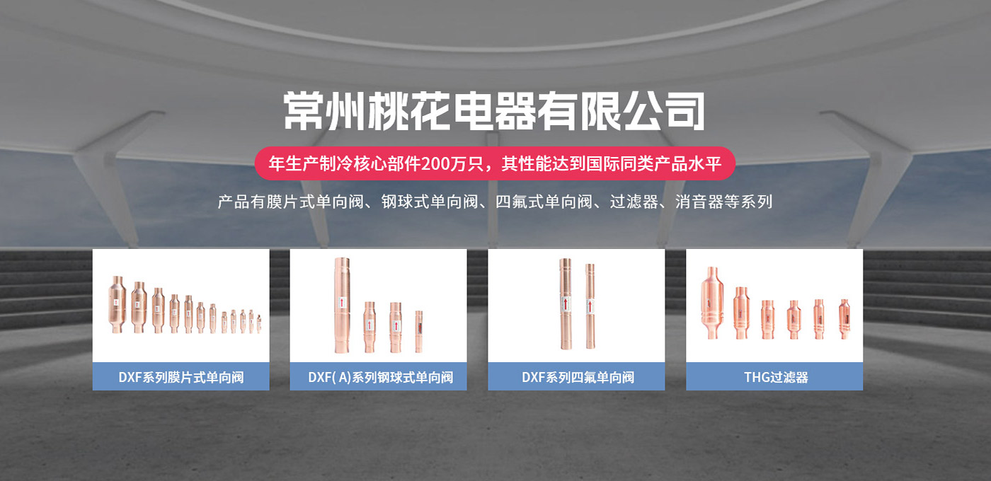 常州桃花電器有限公司地處中國長江“金三角”之稱的上海至南京高速公路、城際高鐵、常州高新經(jīng)濟(jì)技術(shù)開發(fā)區(qū)路段,交通便利、技術(shù)力量十分雄厚。它是集研究、開發(fā)設(shè)計(jì)、制造和經(jīng)營制冷核心部件的企業(yè),主要生產(chǎn)中央空調(diào)上使用的制冷部件。產(chǎn)品有膜片式單向閥、鋼球式單向閥、四氟式單向閥、過濾器、消音器等系列。年生產(chǎn)制冷核心部件200萬只,其性能達(dá)到國際同類產(chǎn)品水平。 企業(yè)擁有先進(jìn)的科學(xué)技術(shù)、國際先進(jìn)的生產(chǎn)加工設(shè)備和精密的檢測(cè)儀器,并已通過ISO9001質(zhì)量體系及CE認(rèn)證,公司歷史悠久,2000年起,經(jīng)過長期積累、沉淀,經(jīng)驗(yàn)豐富,從而保證了產(chǎn)品的高質(zhì)量、高性能、高耐用性。企業(yè)產(chǎn)品在國內(nèi)外市場(chǎng)具有較高的知名度,深受眾多中外品牌制冷客商的好評(píng)。主要客戶有約克、麥克維爾、美的、開利、特靈、頓漢布什、清華同方、天加等.并出口北美、歐洲、東南亞等地區(qū)。 高品質(zhì)產(chǎn)品是企業(yè)的保證,周到服務(wù)是合作友誼的承諾,企業(yè)本著“求
